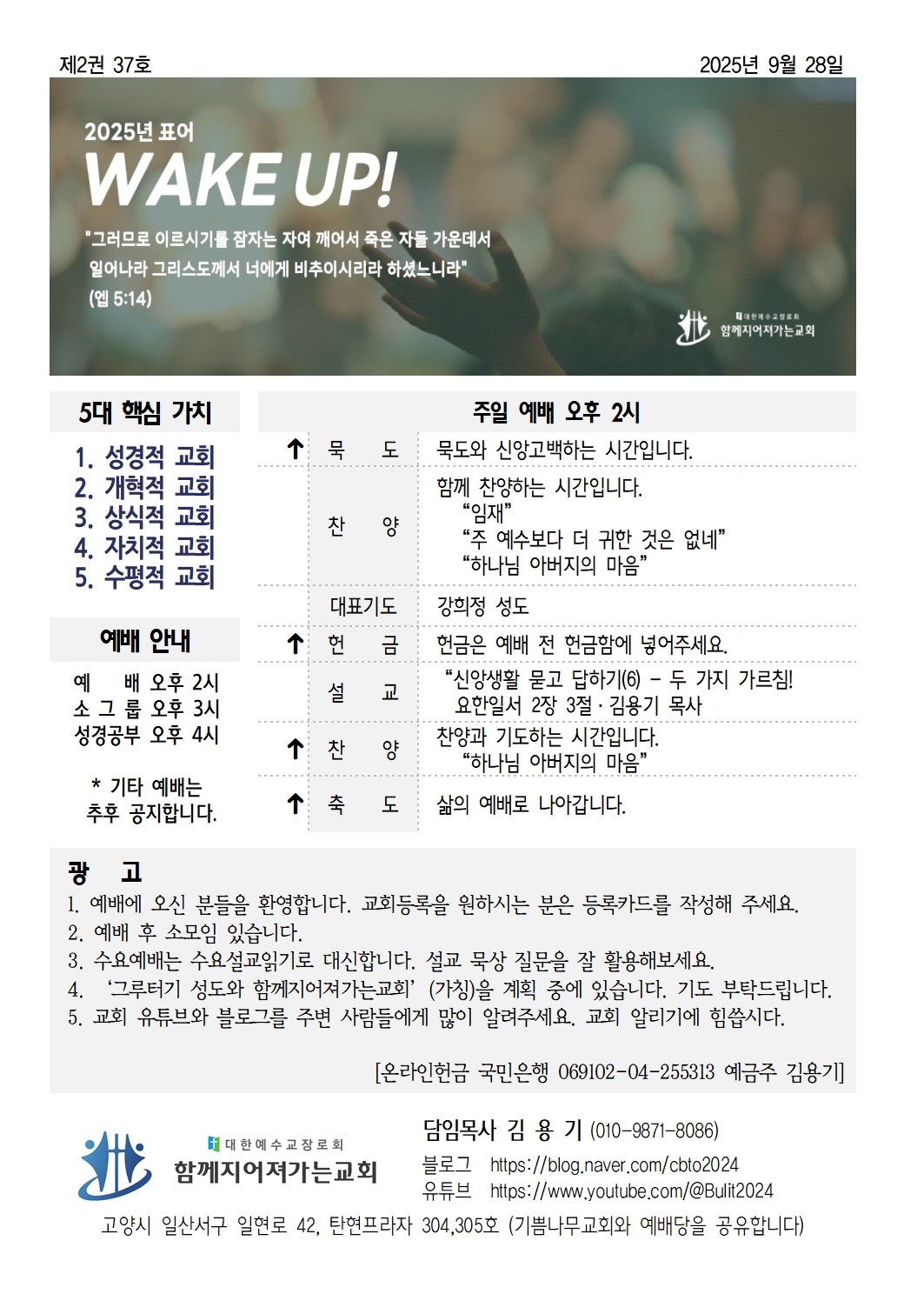 '함께지어져가는교회' 2025년 9월 28일 주일 주보입니다.