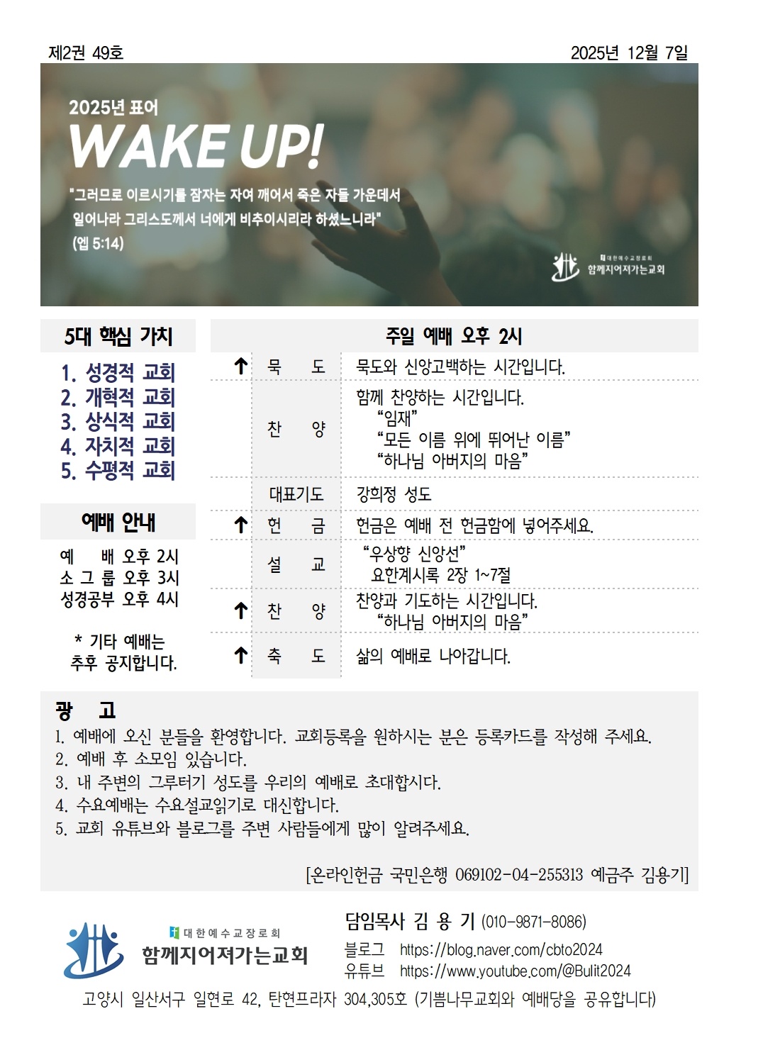 '함께지어져가는교회' 2025년 12월 7일 주일 주보입니다.