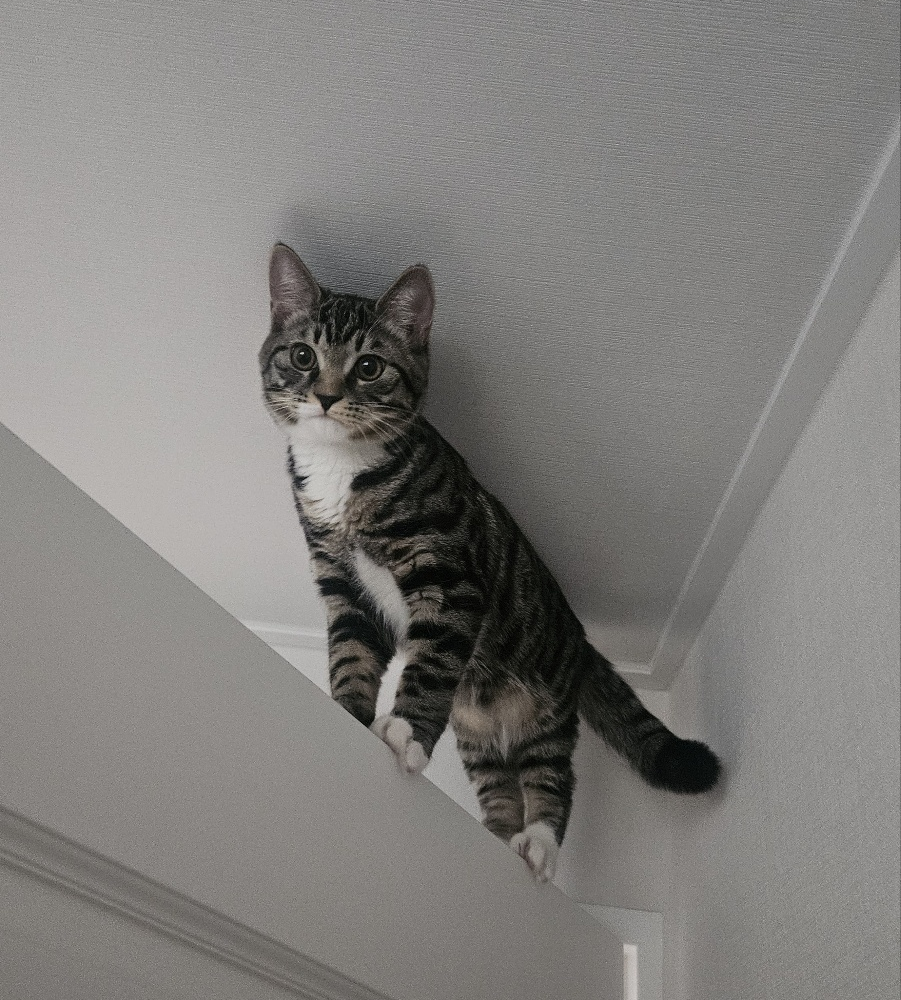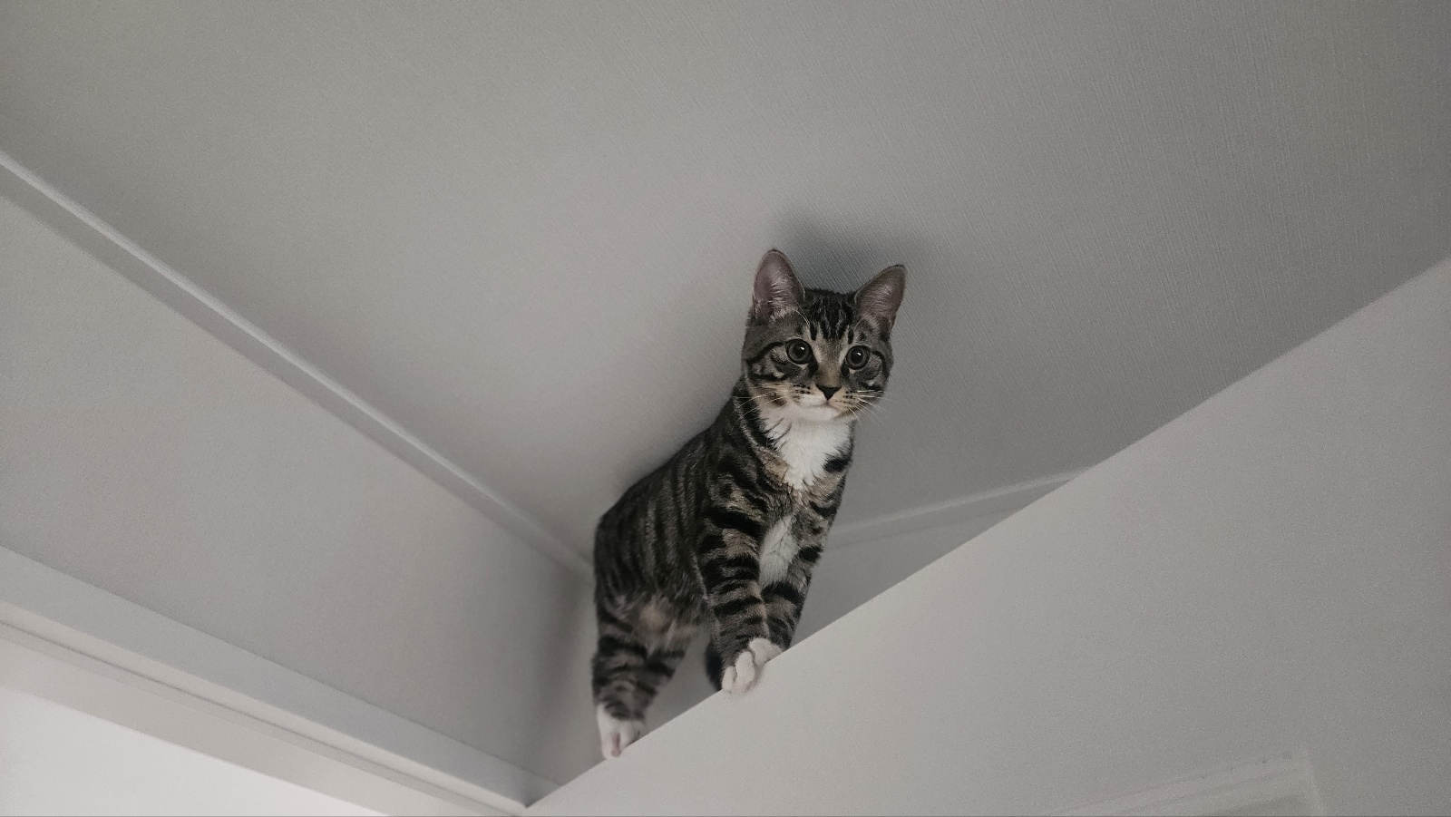 도대체 어떻게 올라갔는지 신비로운 고양이다.