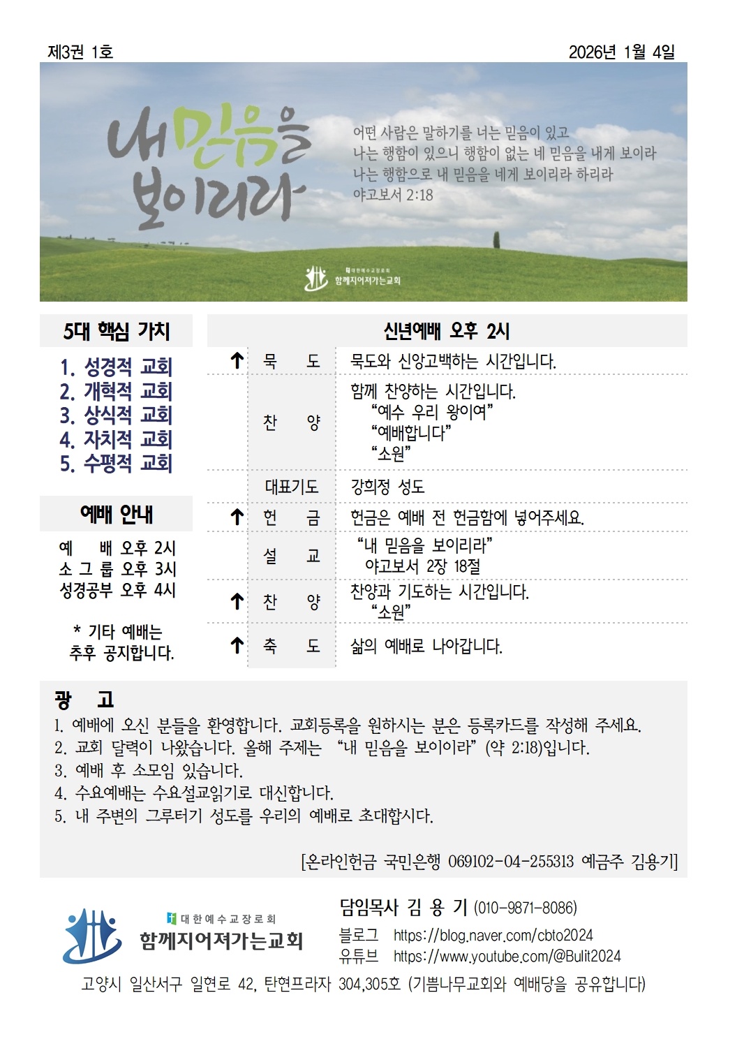 '함께지어져가는교회' 2026년 1월 4일 주일 주보입니다.