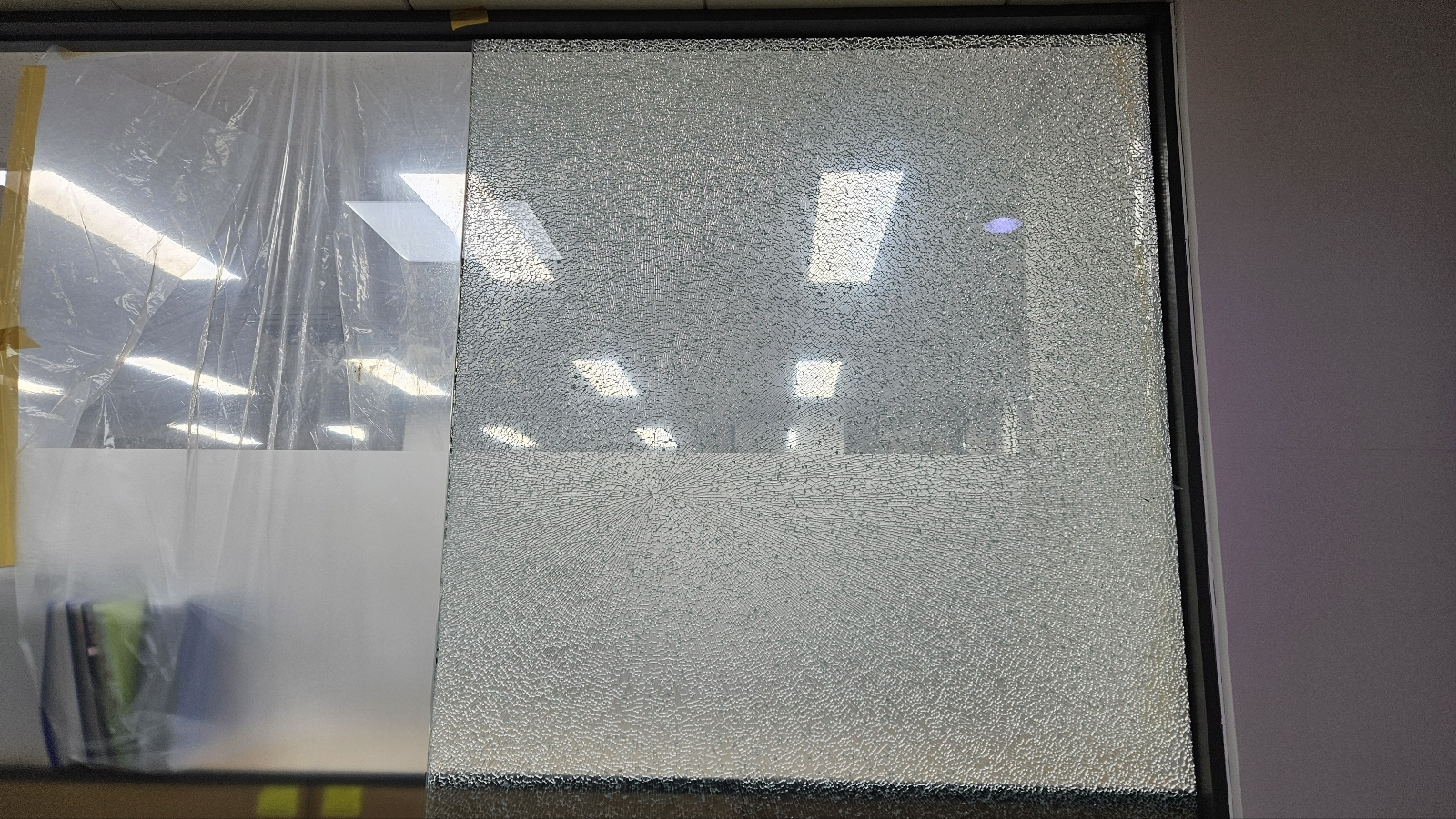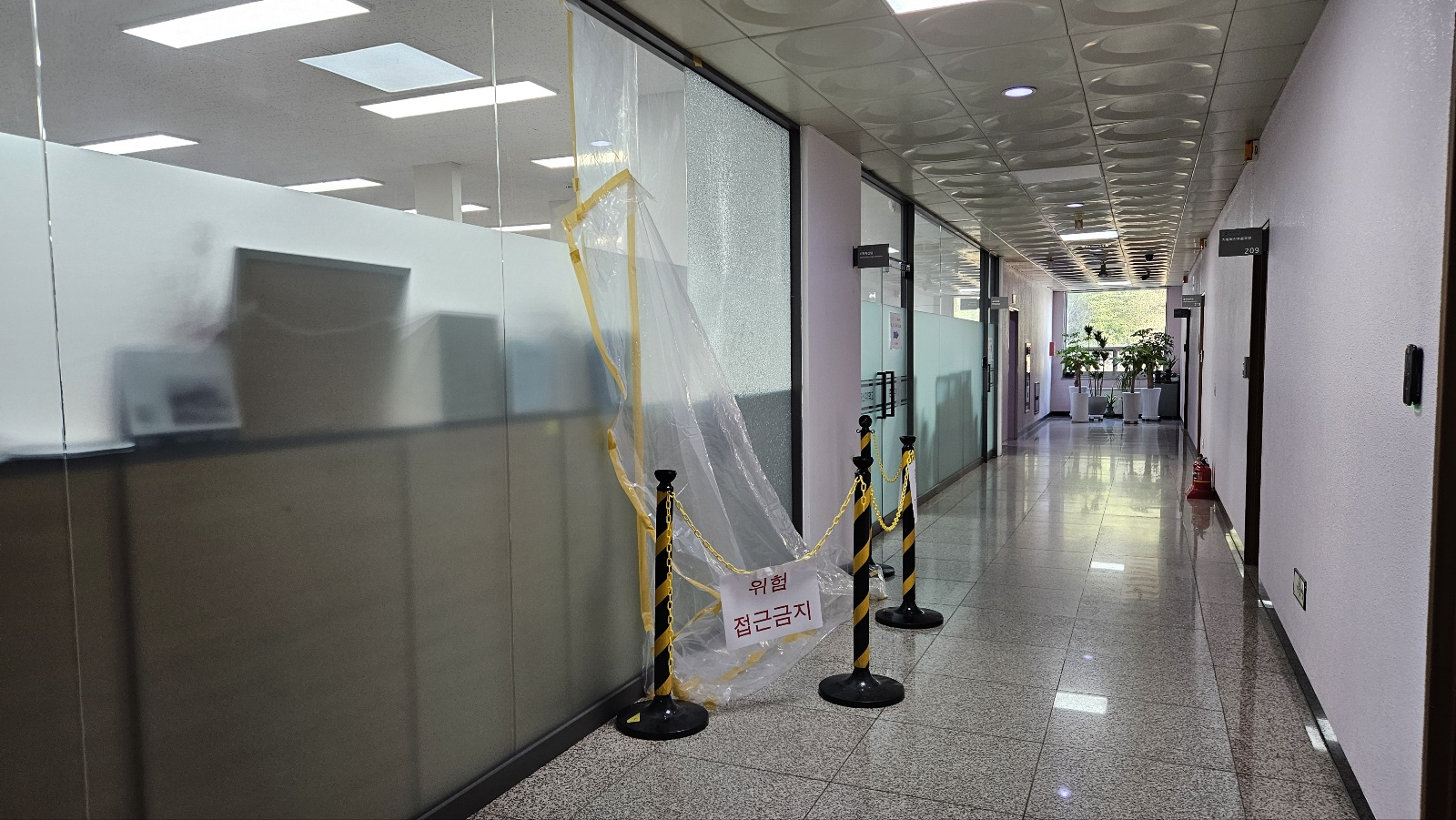 안정이 좀 되고 깨진 유리벽을 보며 균열이 이쁘다고 이야기도 한다.