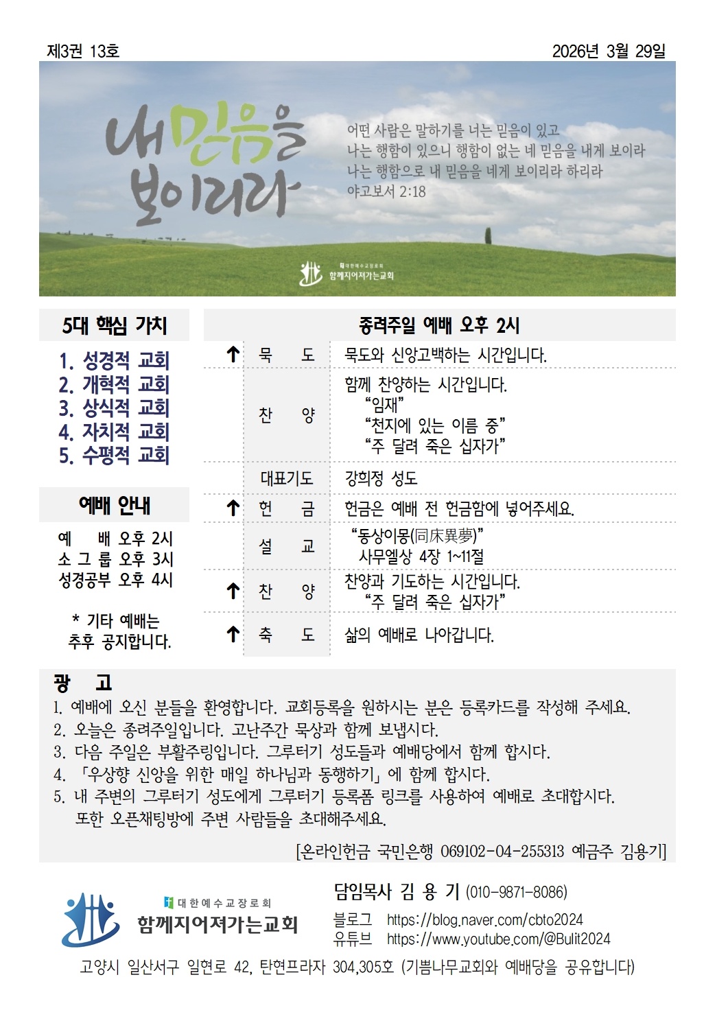 '함께지어져가는교회' 2026년 3월 29일 주일 주보입니다.