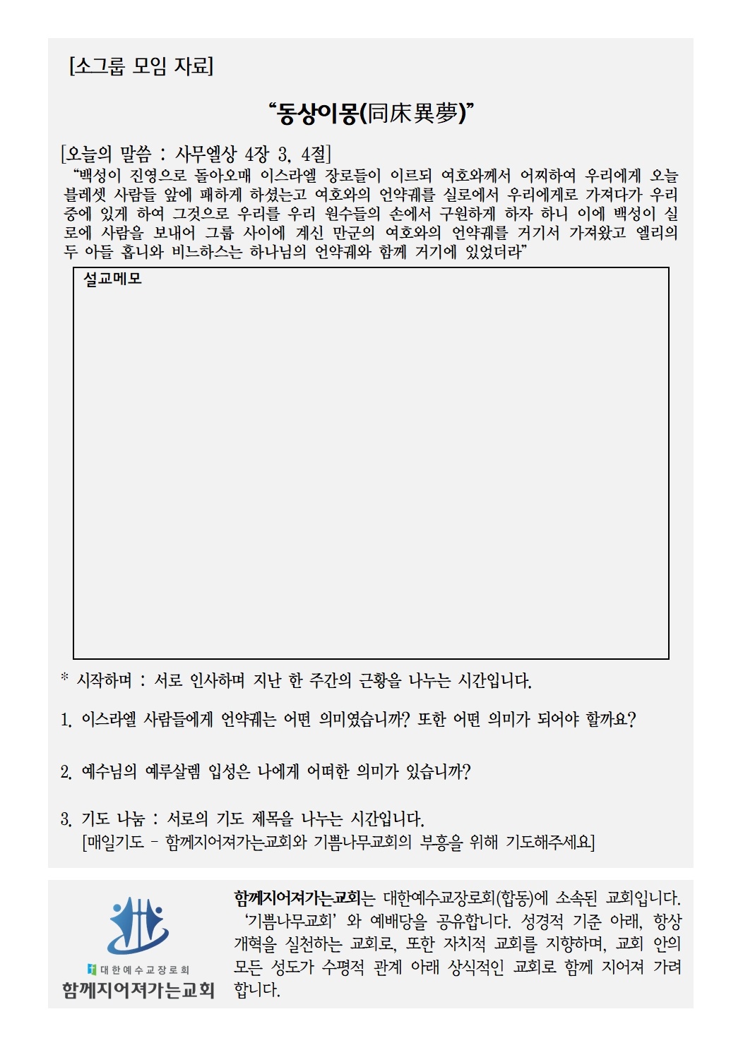 기도와 동참 그리고 함께지어져가길 소망합니다.